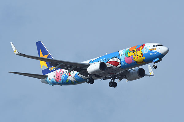 機体ラッピングなどで、さまざまなコラボレーションを果たしてきたスカイマーク。プロサッカーチームの応援ジェットや株式会社ポケモンと連携したピカチュウジェットが各地の空を飛び、空港ではピカチュウが描かれた自動チェックイン機、機内ではオリジナルデザインの紙コップや限定グッズ販売などを楽しめます。