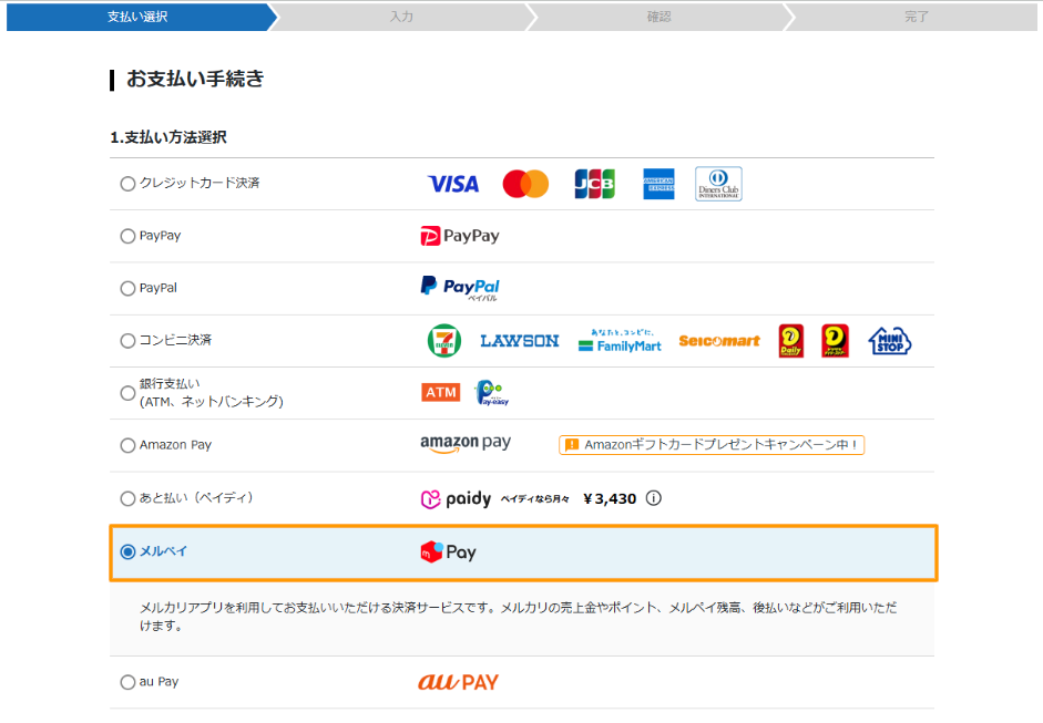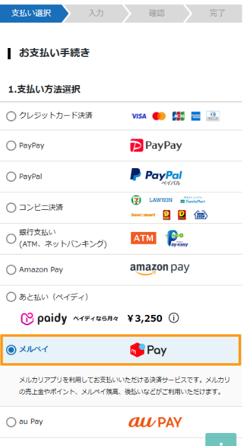 また、メルペイスマート払い(後払い)もご利用いただけます。