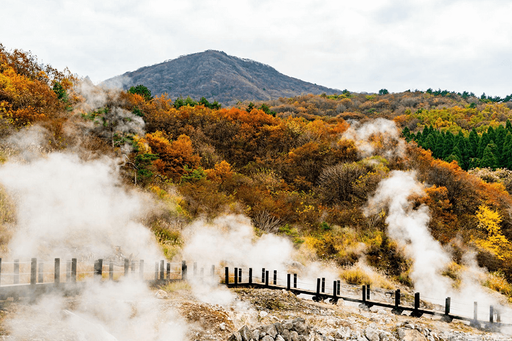おすすめポイント:湯の花小屋が並ぶ明礬温泉の高台に佇む老舗旅館。青磁色の硫黄泉は“美肌の湯”として知られ、歴史ある湯治場の雰囲気を味わえます。名物「地獄蒸しプリン」も人気。