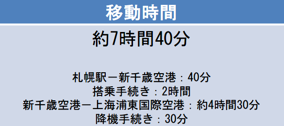 札幌-上海間の片道の移動時間