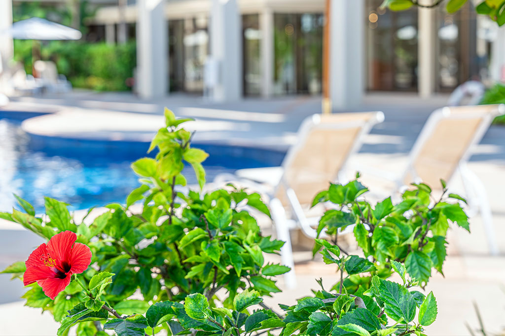 亜熱帯の豊かな自然 心地よい風、鳥のさえずり、色鮮やかな植物が五感を刺激し、深いリラックスを促進。