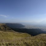 草千里ヶ浜展望所からはカルデラ西部を一望でき、立野峡谷や熊本市内、金峰火山、天気がよければ雲仙まで望めます。